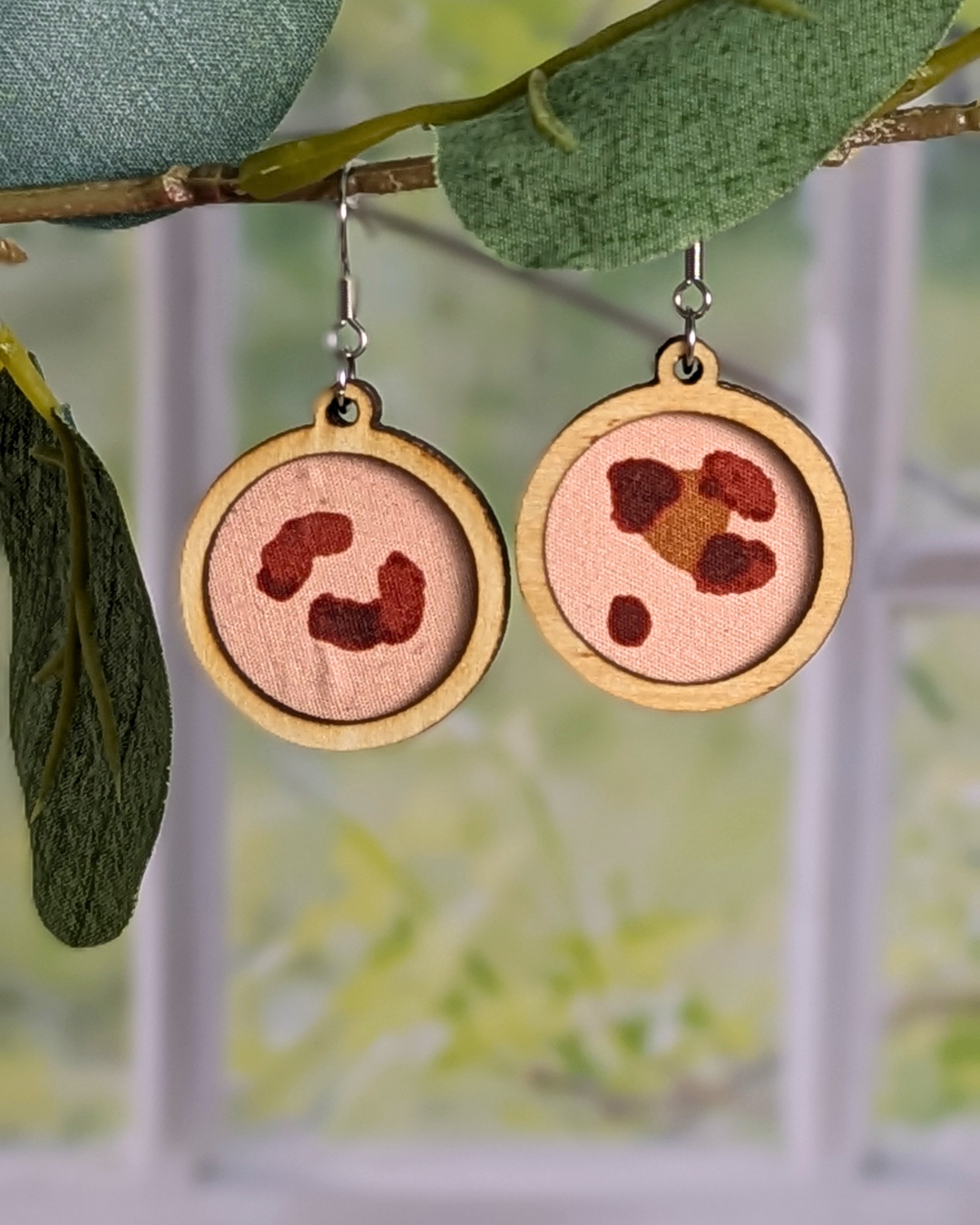 Elles associent du bois, découpé avec soin par Au bois d’Odile, et des chutes de tissus issues de mes créations cousues.