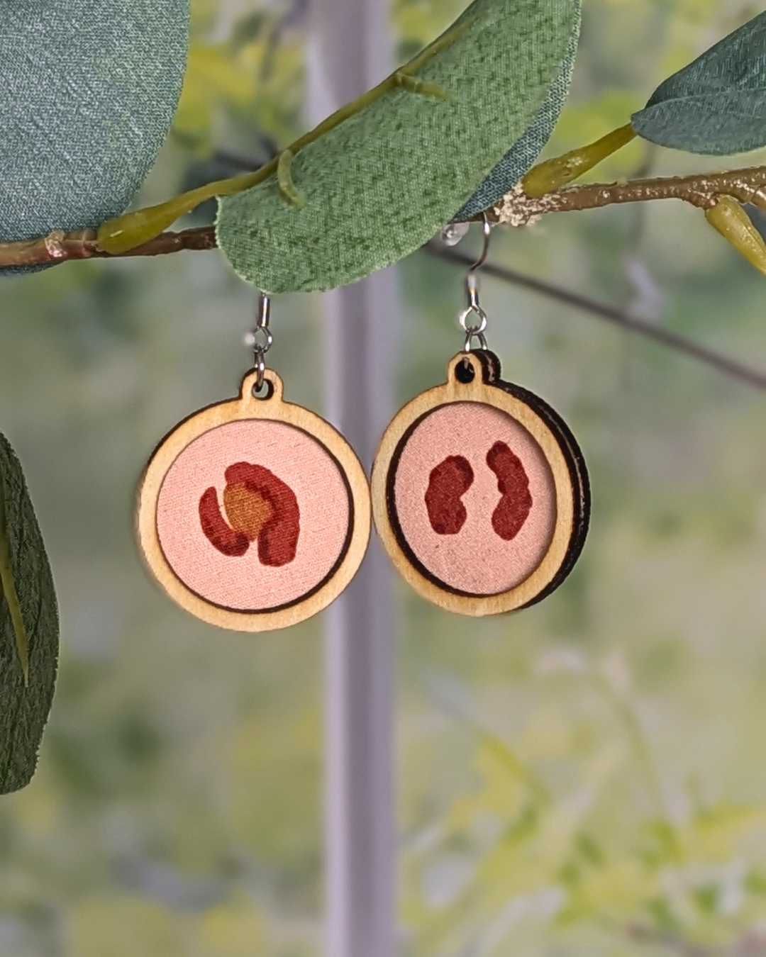 Elles associent du bois, découpé avec soin par Au bois d’Odile, et des chutes de tissus issues de mes créations cousues.