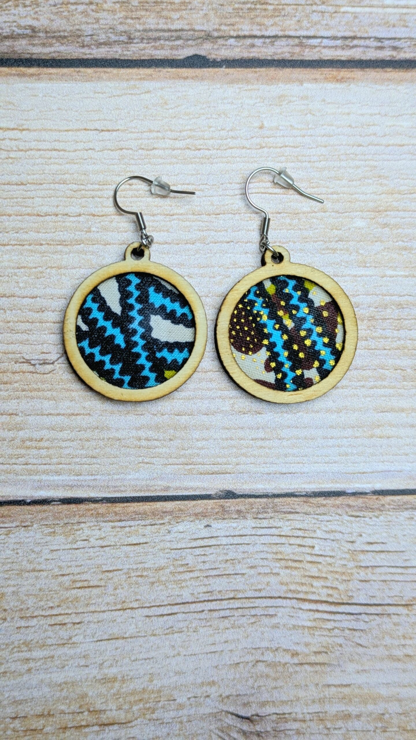 Elles associent du bois, découpé avec soin par Au bois d’Odile, et des chutes de tissus issues de mes créations cousues.