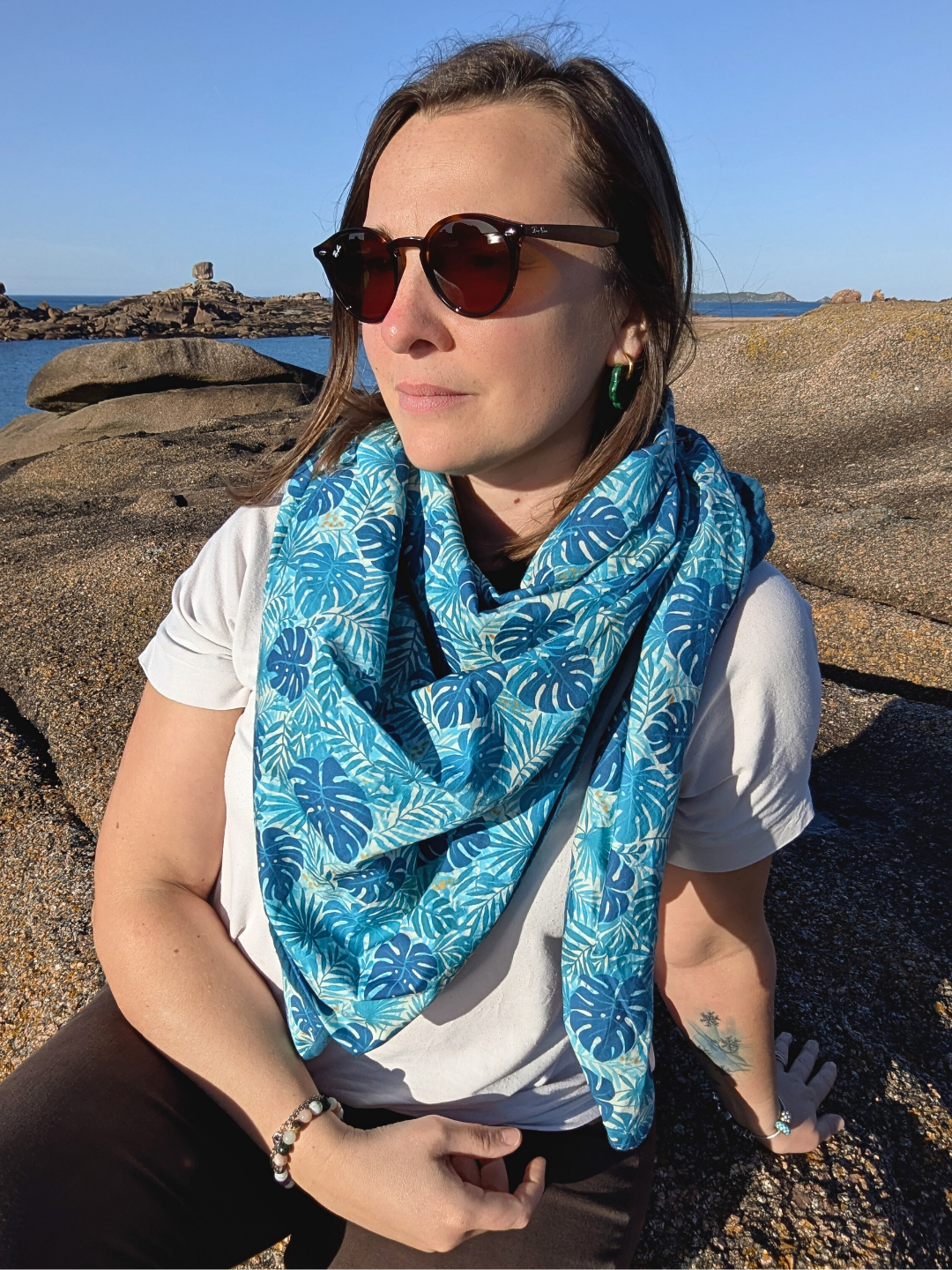 chèche printemps palmier bleuChèche Printemps – Palmiers Bleus