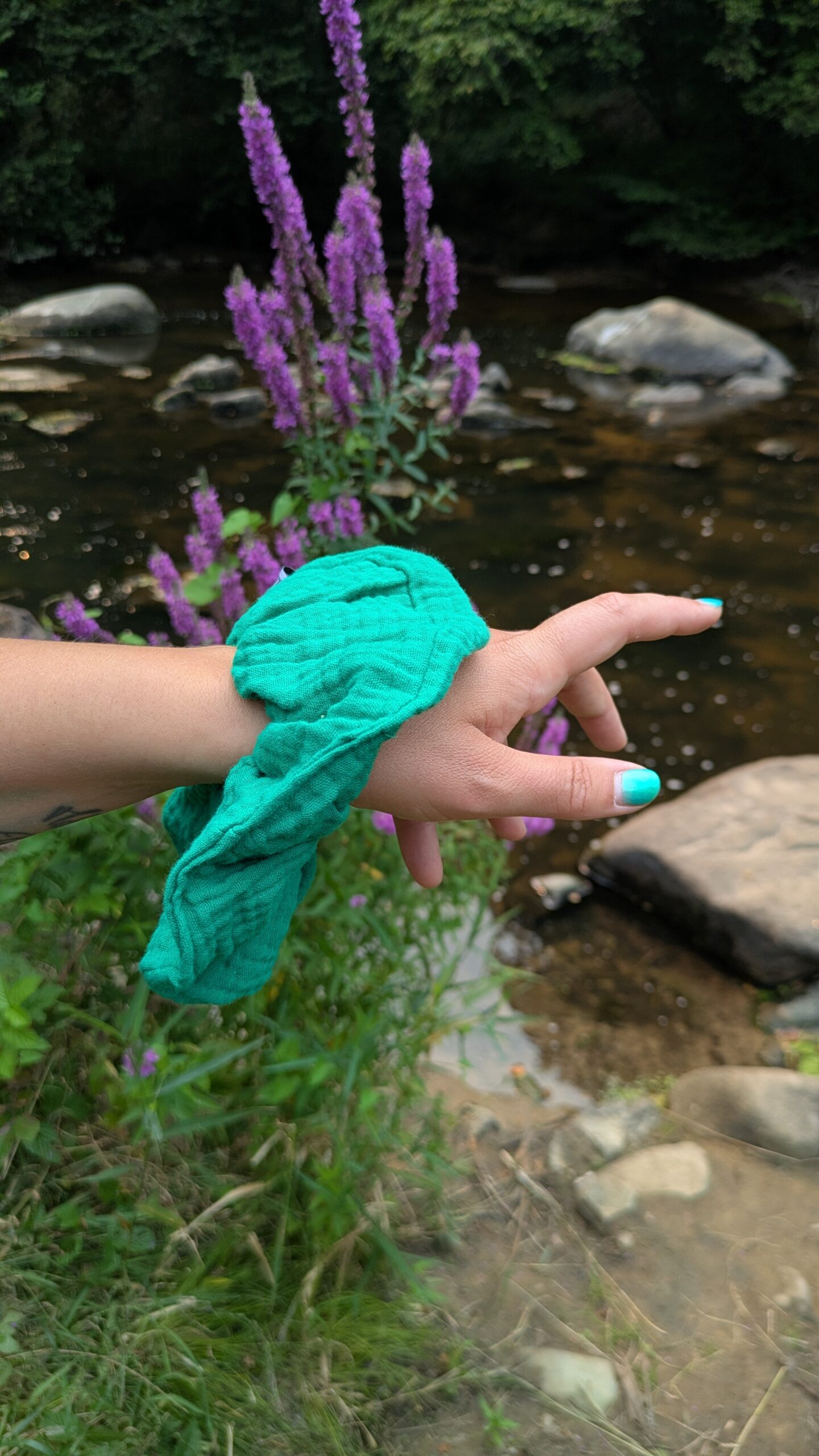 chouchou double gaze marron clairChouchou en double gaze de coton – vert